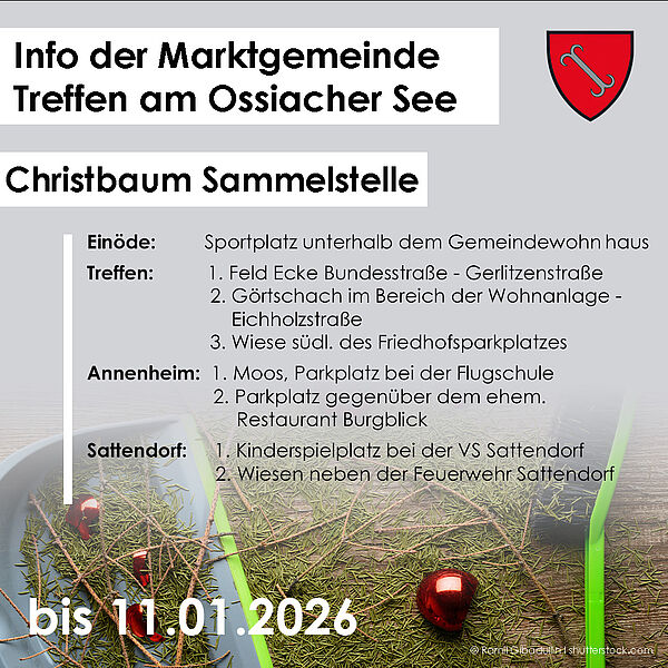 Auch heuer organisiert die Marktgemeinde Treffen am Ossiacher See wieder die Christbaumsammelaktion, um eine umweltgerechte Entsorgung der Weihnachtsbäume zu gewährleisten. Die Sammlung findet ab Januar 2026 an den bekannten Sammelstellen im gesamten Gemeindegebiet statt.
